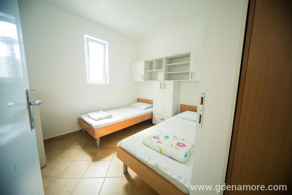 Apartman strukture dnevna+spavaća soba. Jedan francuski i 3 odvojena kreveta. Idealan za porodično ljetovanje. - Kuhinja - Odvojeno kupatilo - Velika terasa u zelenilu - Klima uređaj - TV - Visokokvalitetan WiFi internet